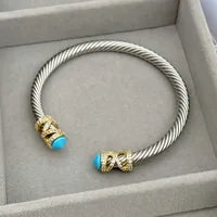 Blue Rock Geometric 316L Stainless Steel Copper Zircon 18K Gold Plated Plating Inlay Tube Bangle