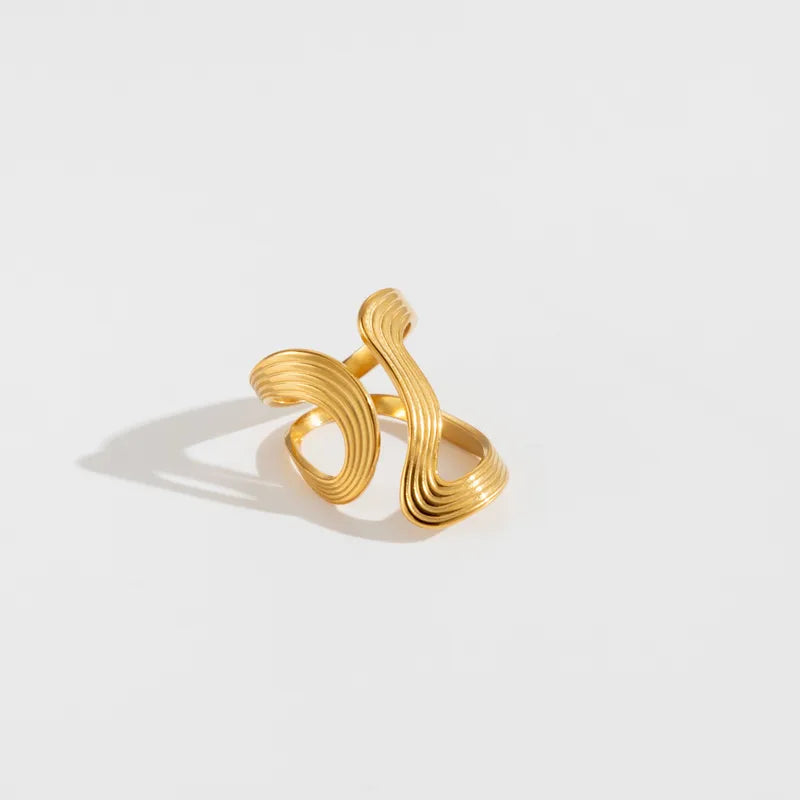 Geometric Waves 304 Stainless Steel 18K Gold Plated Open Rings