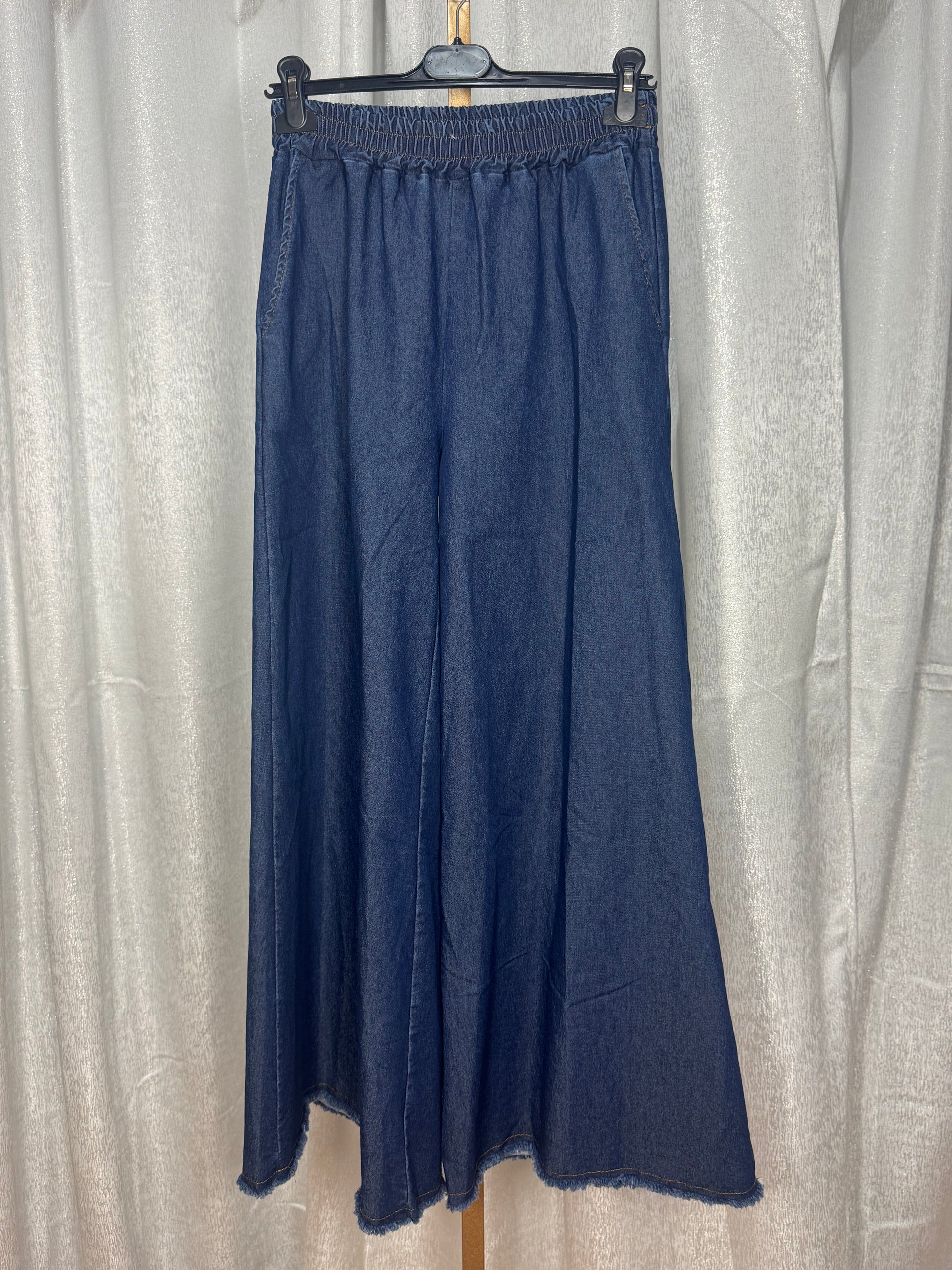 Experience effortless elegance with the Italian Palazzo Denim with Stretch. Crafted from premium Italian denim, these pants combine a luxurious feel with exceptional flexibility for all-day comfort. The wide-leg palazzo cut offers a flattering silhouette that moves gracefully, ideal for both professional settings and casual outings. Designed to maintain shape and provide ease of wear, this denim enhances your wardrobe with a refined yet relaxed style. One Size.