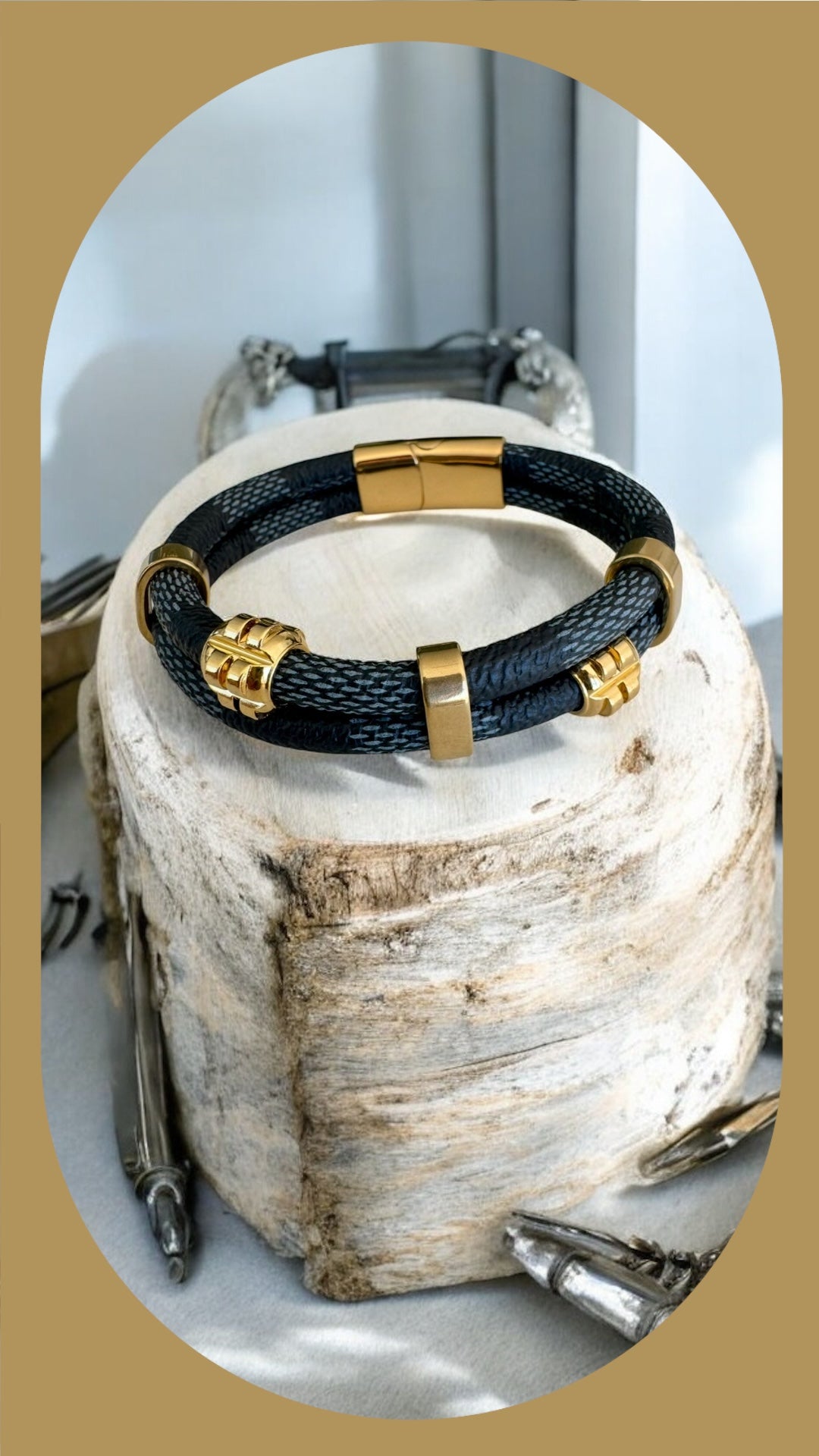 This stylish men's bracelet features a chic gold accent, adding a touch of luxury to any outfit. Expertly crafted with premium materials, this accessory is both durable and fashionable. Elevate your style with this sleek and sophisticated bracelet.