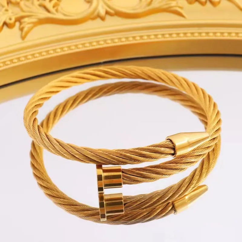 Simple Style Nail Titanium Steel 18K Gold Plated Bangle