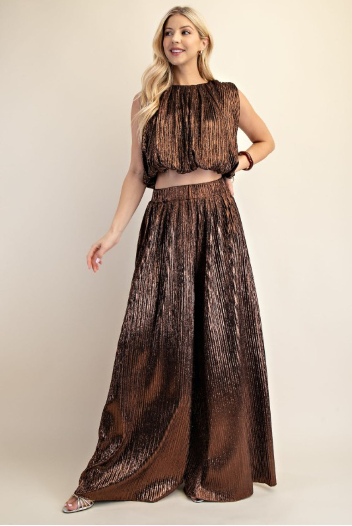Introducing the Texturized Palazzo Brown, designed for comfort and versatility. Made with a texturized fabric and an elastic waistband, these pants are perfect for any occasion. The elastic waistband provides a comfortable and secure fit, while the texturized fabric adds a unique touch of style. Elevate your wardrobe with these must-have pants.