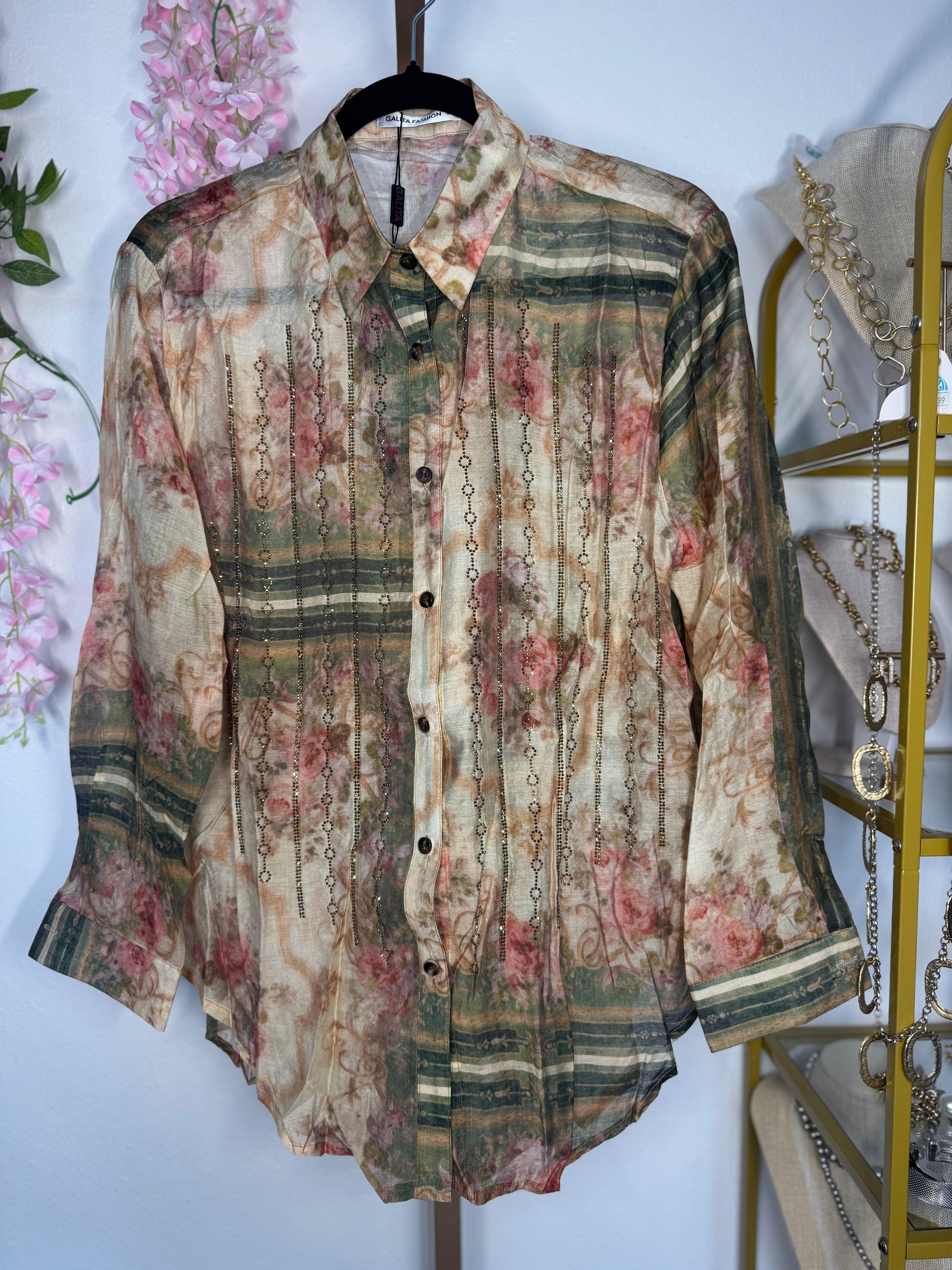 This long sleeve top features a unique glitter accent design in a beautiful multi green color. Made with high-quality fabric, this top offers both style and comfort for any occasion. Upgrade your wardrobe with this eye-catching and versatile piece. Runs big.