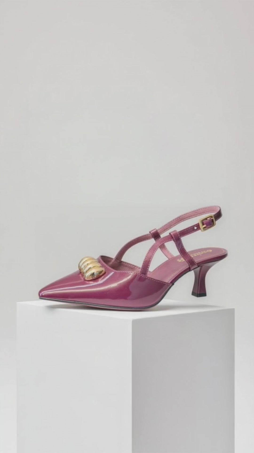 The Wine Charol Heel features a medium height design, providing a balanced combination of elegance and comfort. Its wine-colored patent finish adds a touch of sophistication, making it suitable for both formal and casual occasions. Ideal for prolonged wear, this heel offers stability and support.